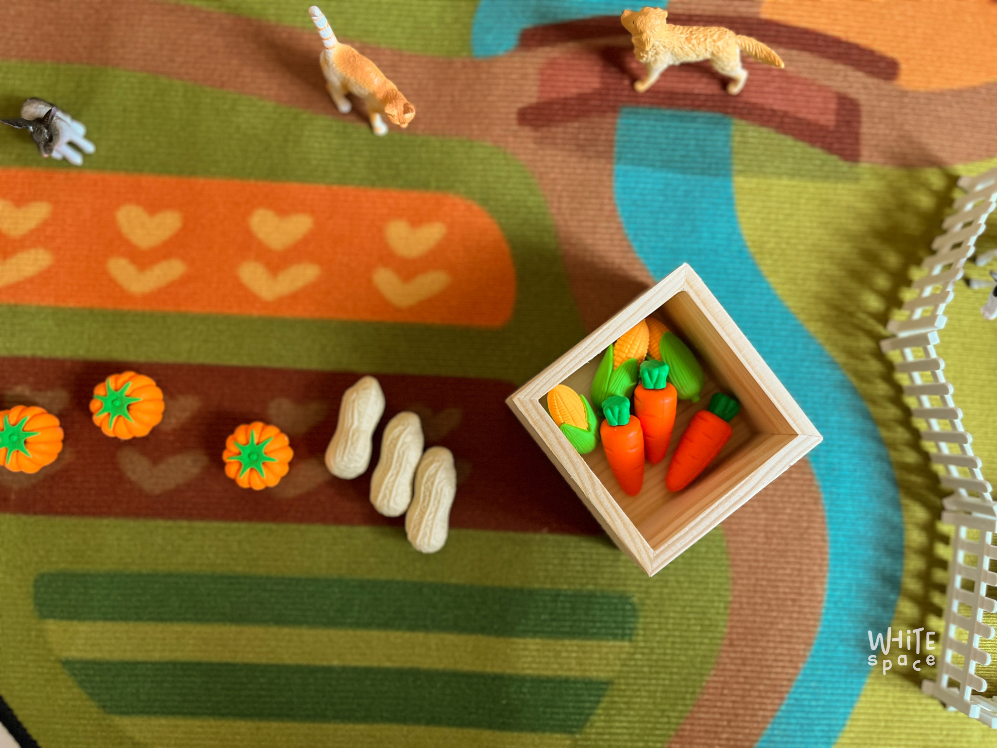 Fine Motor Skills – Harvest veggies, place animals, and explore textured pieces.