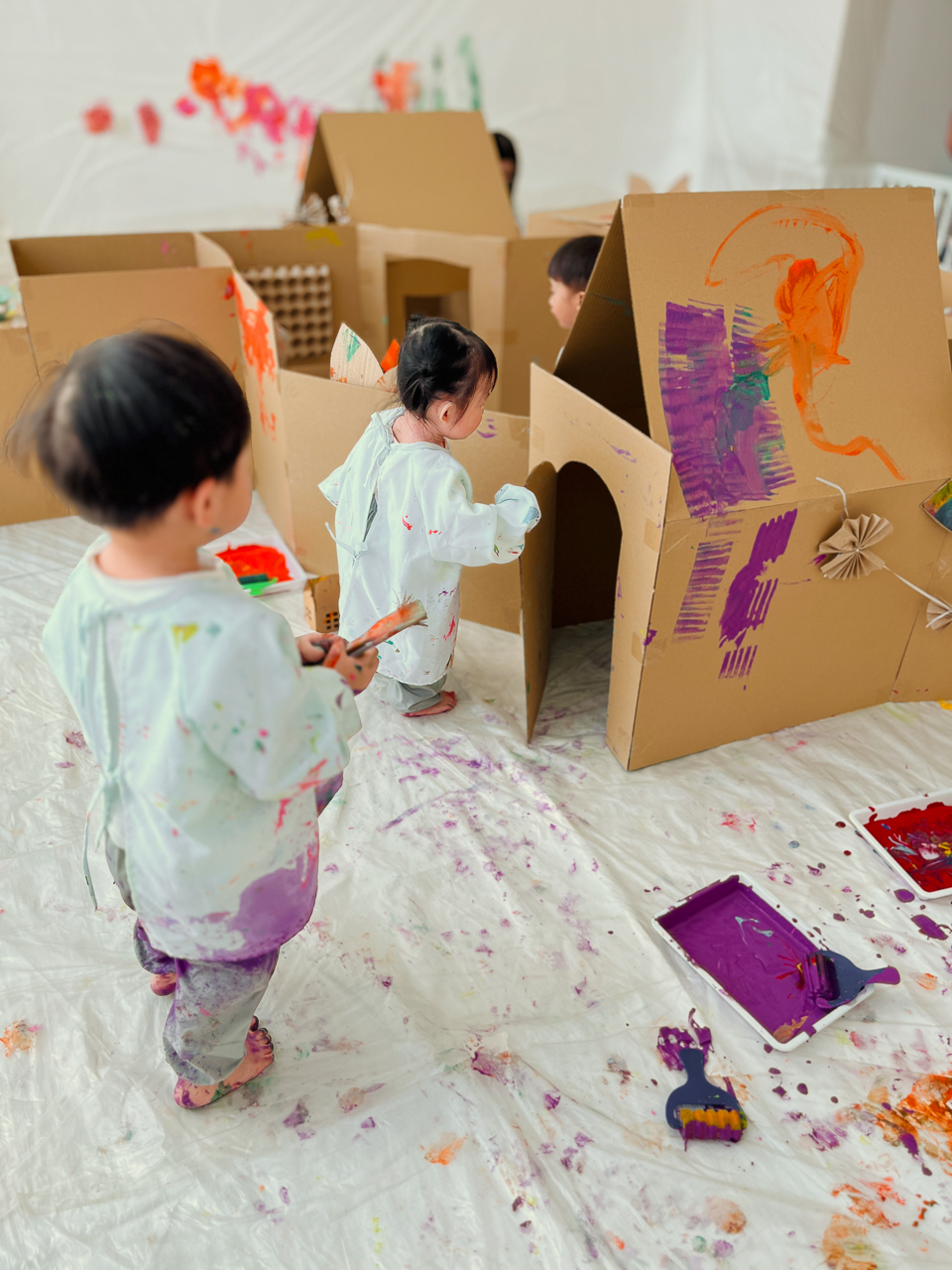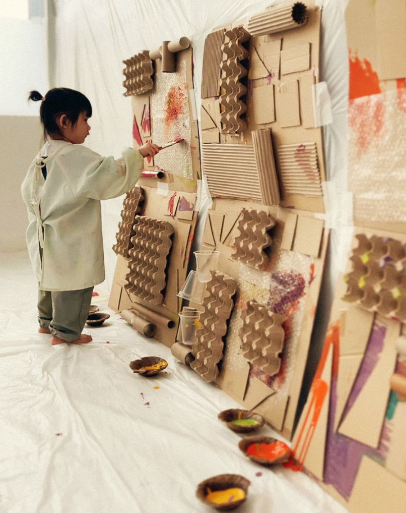 我们的创意艺术课结合“过程艺术”和“感官探索”,让小朋友自由玩、自由创作——没有对错。