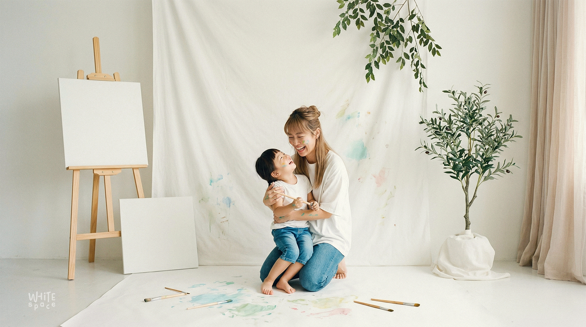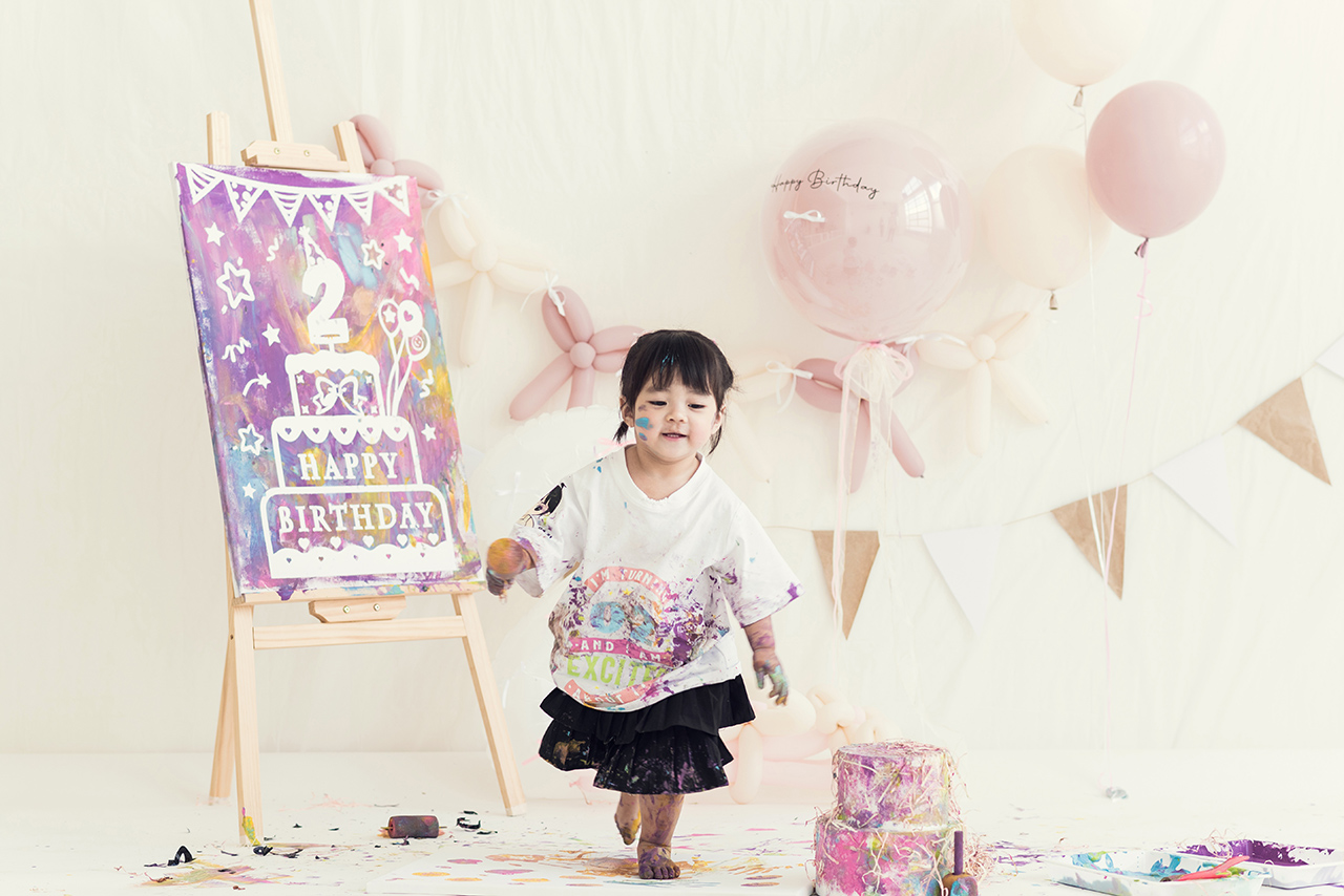 From first-month baby portraits to first-year Cake Smash, and Signature Paint Smash sessions for ages two and beyond, we capture joyful milestones through minimalist, art-inspired photography — including playful moments with parents.